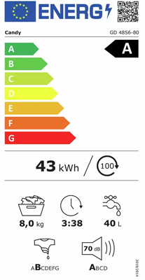 Candy Quick Pro comes complete with 8 quick cycles from just 14 minutes, for smaller loads, smoother fabrics with Easy Iron, and a Smart Wash that adapts to your needs. Fast, intuitive and built to last — making every laundry day lighter, fresher and effortlessly yours.